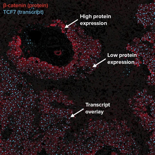 Though mRNA and protein levels are related, they often diverge due to regulatory controls, timing delays and biological noise. A fixed tissue section offers only a snapshot in time, and RNA and protein abundances may not align at that moment. By imaging both, researchers capture complementary layers of cell activity.
