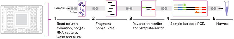 Figure 2. The 48.Atlas IFC architecture automates multiple workflow steps otherwise performed manually, including poly(A) RNA capture, RNA fragmentation, reverse-transcription, sample-barcode PCR and multiple wash steps.