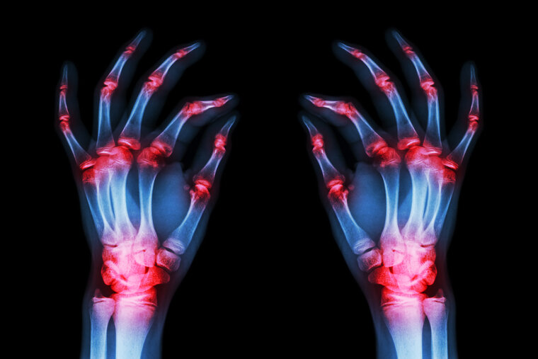 Rheumatoid arthritis (RA) is an autoimmune condition that causes pain and inflammation in the body’s joints. The immune system attacks the synovium (the lining of the joints), leading to inflammation, stiffness, swelling and pain that usually affect the hands, knees or ankles but can also cause issues with the eyes, heart, circulatory system and lungs.