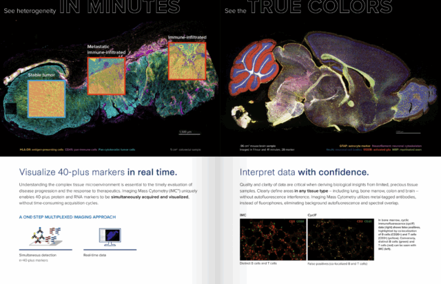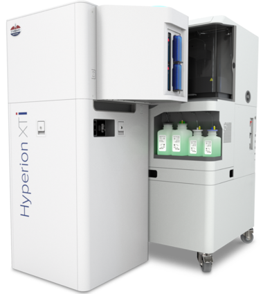 Powered by proven Imaging Mass Cytometry™ (IMC™) technology, Hyperion XTi is a multiplexed tissue imager that uses metal-tagged antibodies, instead of fluorophores, to simultaneously and reliably acquire 40-plus protein and RNA markers, without autofluorescence interference.